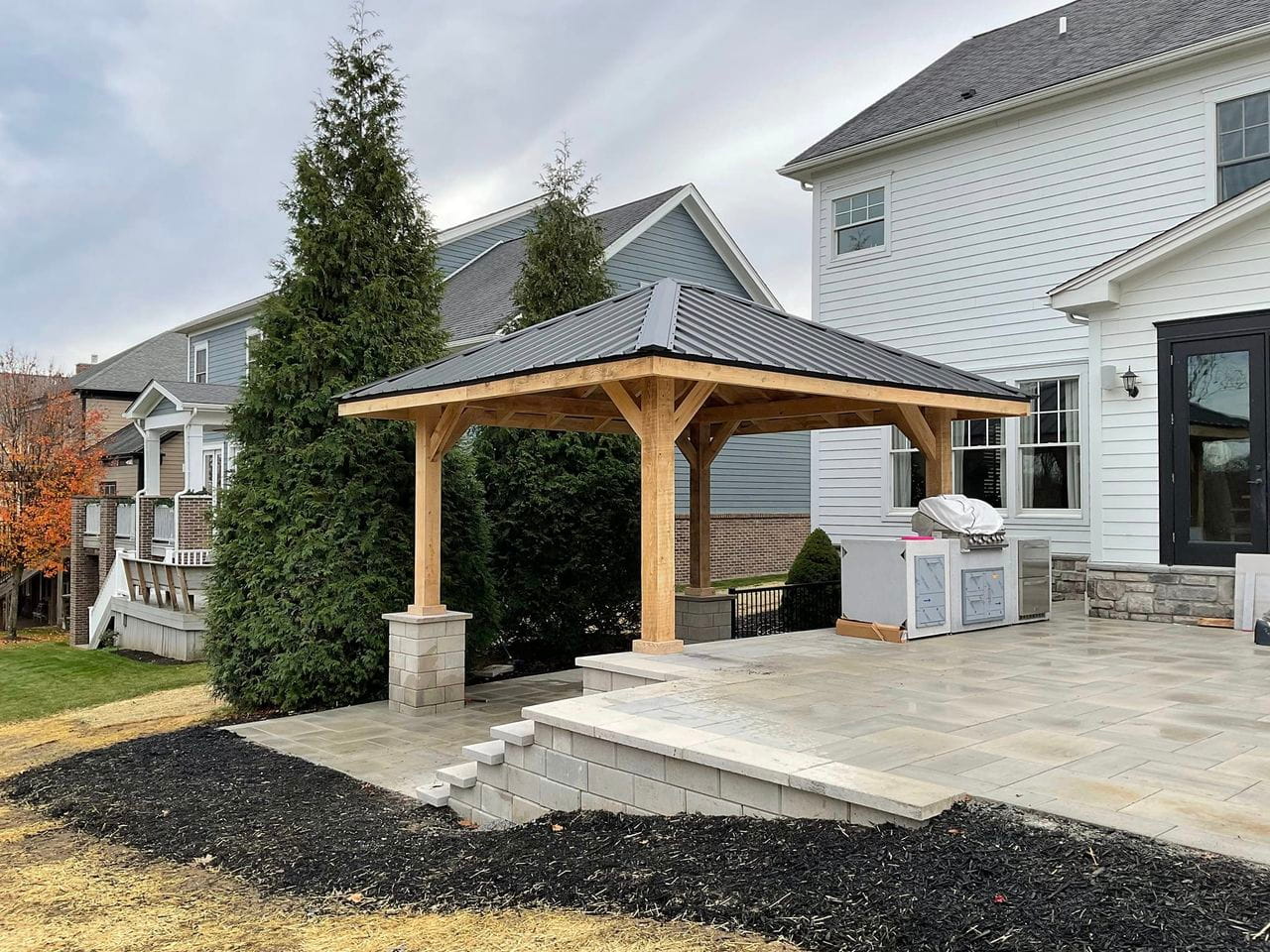 Yes. Pavilions are permanent structures that require building permits and structural inspections in Michigan. Grand Traverse County has specific requirements around footing depth, structural connections, and setbacks. We handle the entire permit process as part of every project — you don't navigate the building department. We do.