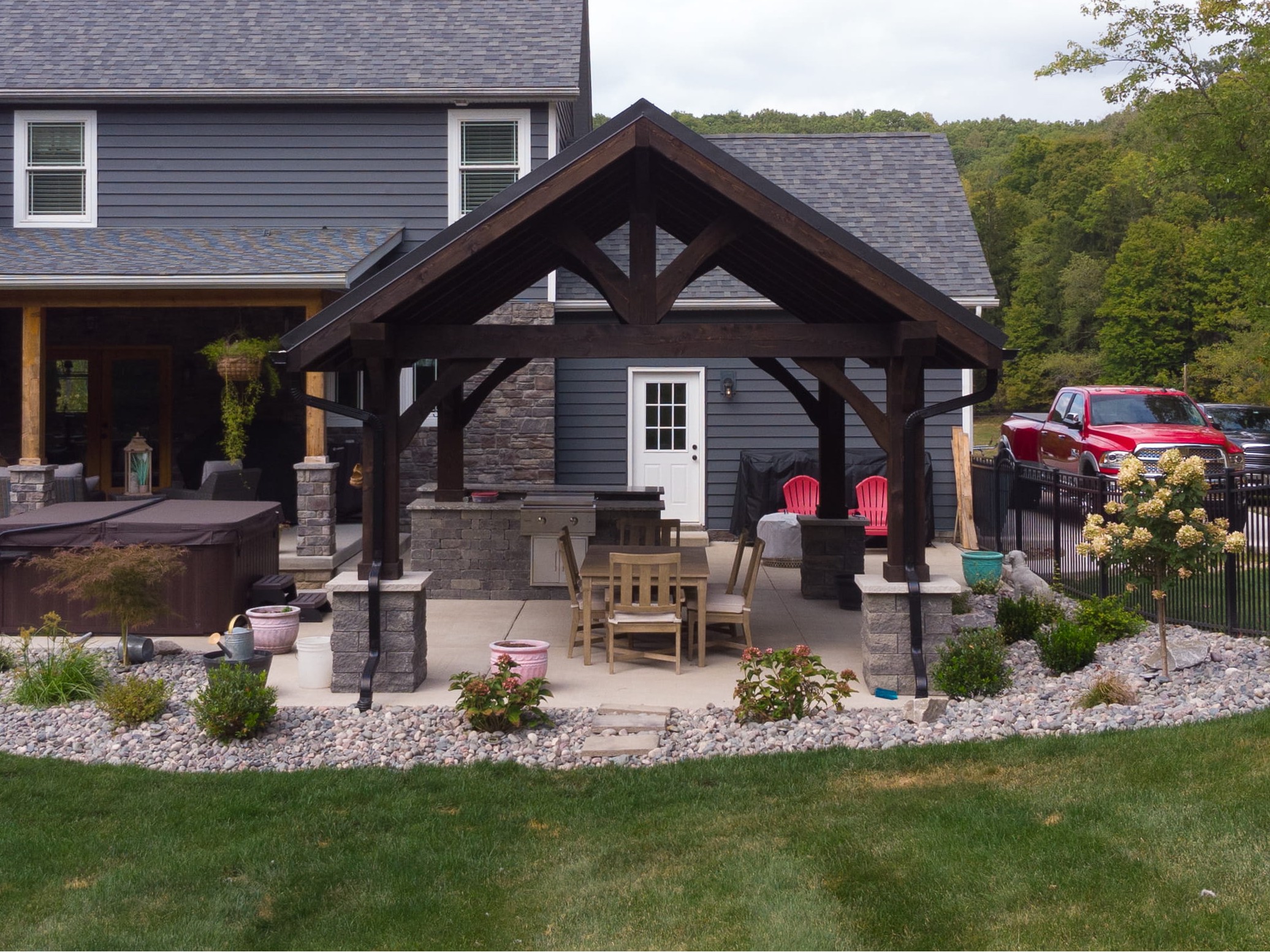 A timber-framed pavilion doesn't just improve your outdoor space — it redefines how your family uses it.