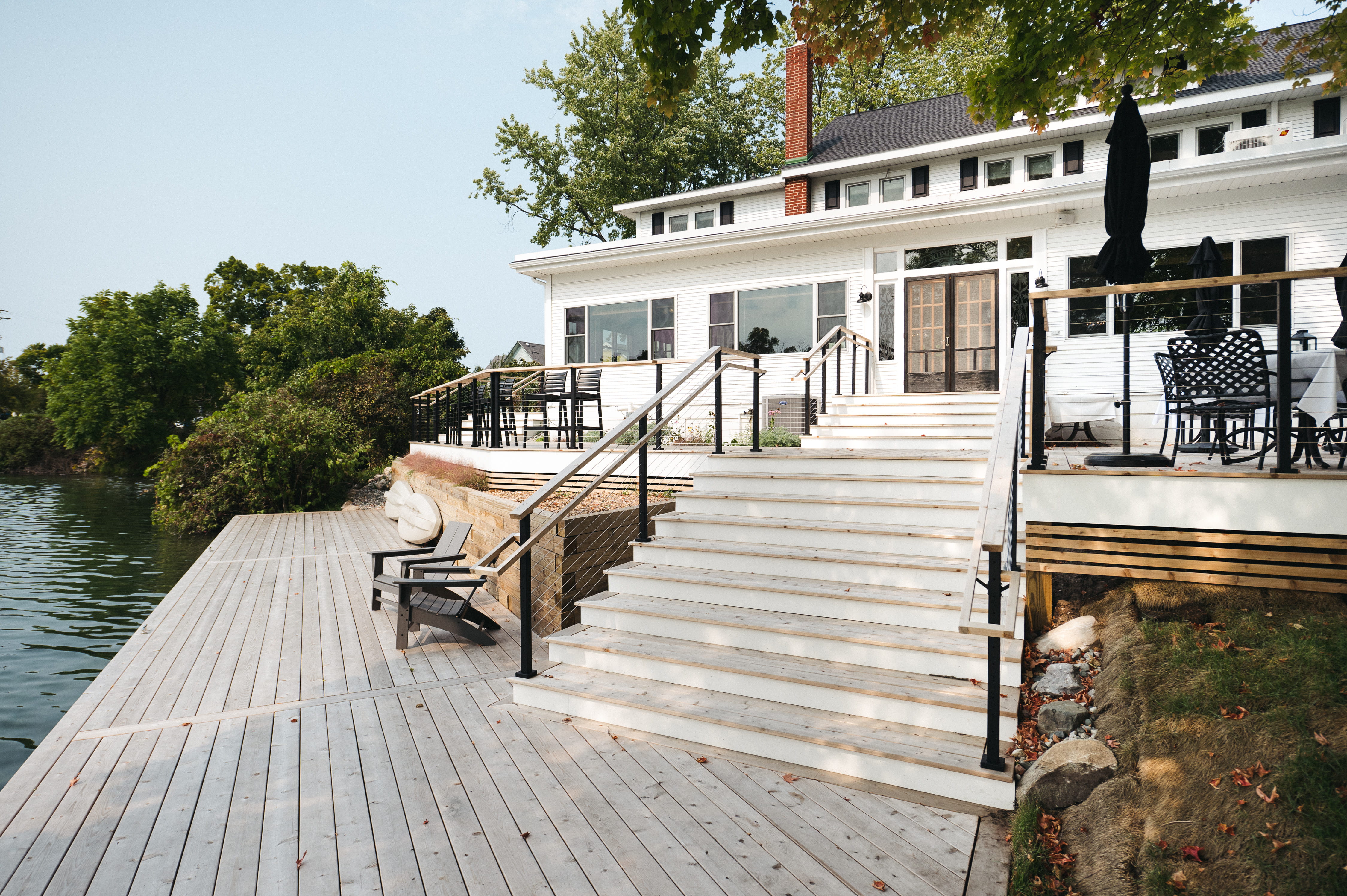 Homes along West Bay, East Bay, and lakefront properties throughout Grand Traverse County face accelerated corrosion and moisture penetration compared to inland builds. We use stainless steel fasteners, hidden fastening systems, and moisture-resistant framing components on all waterfront and bayfront projects. Our One-Track motorized screen systems are built on powder-coated aluminum frames with marine-grade hardware — rated for coastal environments with no finish degradation.